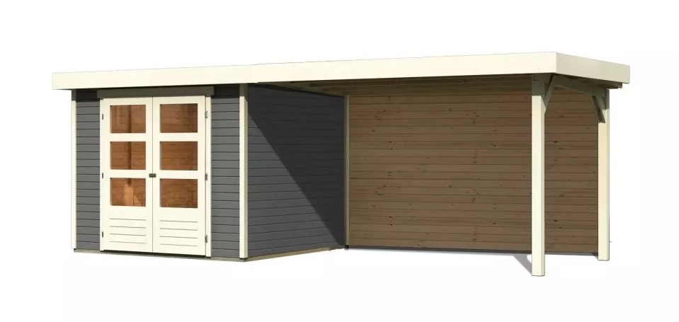 dom drewniany KARIBU ASKOLA 3,5 + nadstawka 280 cm łącznie ze ścianą tylną (9150) terragrau
