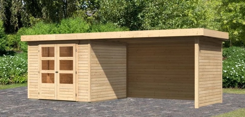 dom drewniany KARIBU ASKOLA 3,5 + nadstawka 280 cm łącznie ze ścianami tylnymi i bocznymi (77721) natur