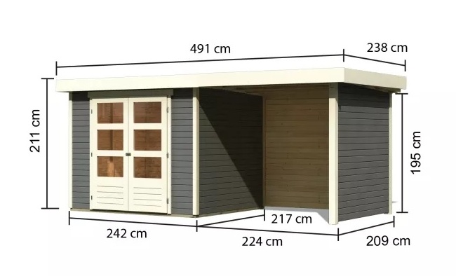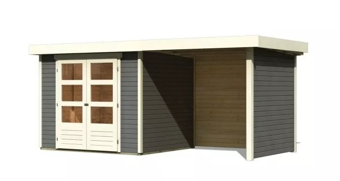 dom drewniany KARIBU ASKOLA 3 + nadstawka 240 cm łącznie ze ścianami tylnymi i bocznymi (82923) terragrau
