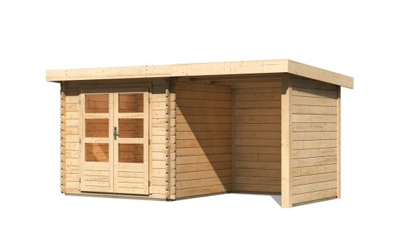 dom drewniany KARIBU BASTRUP 2 + nadstawka 200 cm łącznie ze ścianami tylnymi i bocznymi (73314) natur