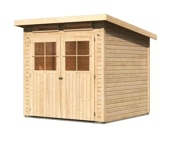 Podstawowy model drewnianego domu do Twojego ogrodu. Model ten posiada płaski dach oraz dwuskrzydłowe drzwi uchylne z oknem w każdym skrzydle. Materiałem konstrukcyjnym domu są profile drewniane o grubości 19 mm, doskonale wyfrezowane ze świerku nordyckiego. Dostarczamy go w zestawie w stanie rozłożonym, gdzie ściany składają się z pojedynczych profili drewnianych, które wystarczy złożyć i skręcić. Gwarantuje to wyjątkowo prosty montaż, z którym poradzi sobie każdy majsterkowicz.