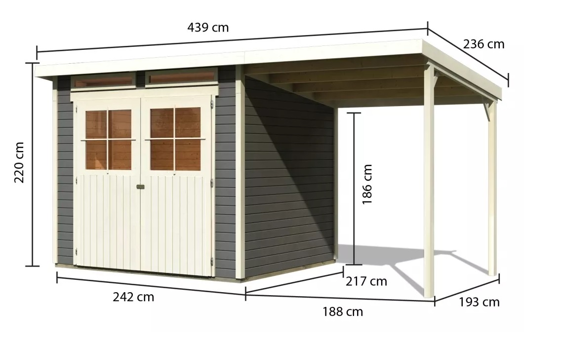 dom drewniany KARIBU GLUCKSBURG 4 + nadstawka 190 cm (83233) terragrau
