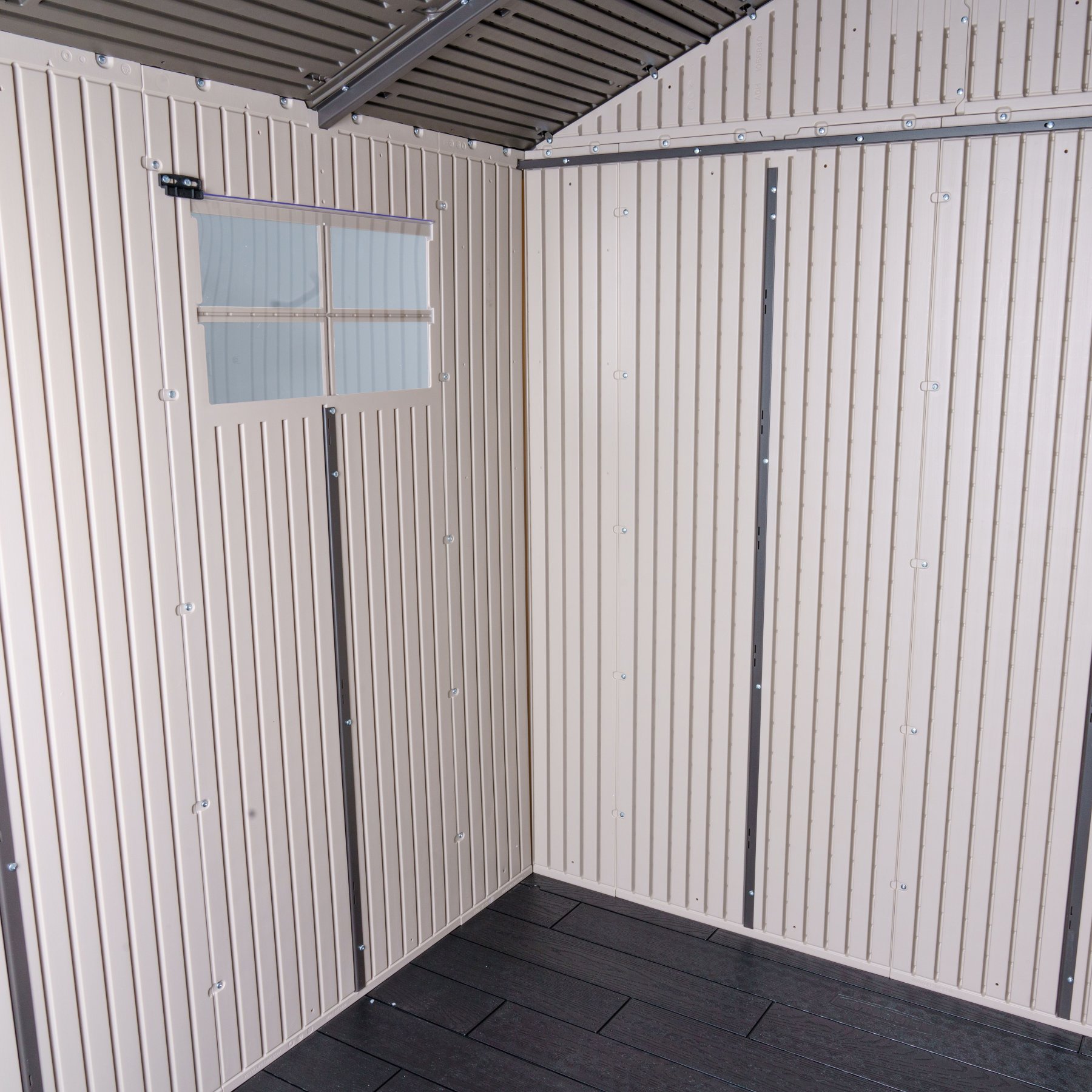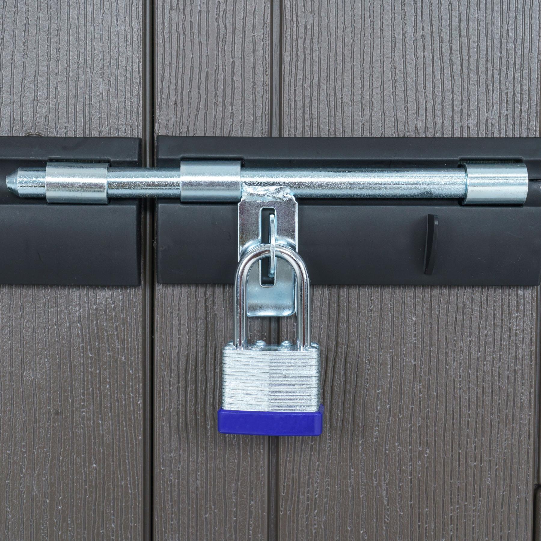 Solidny domek z tworzywa sztucznego „nowej generacji” do przechowywania artykułów ogrodniczych, sportowych, basenowych, grillowych, kempingowych, motoryzacyjnych i innych artykułów ogrodniczych. Nowoczesny design, łatwy montaż, zastosowanie całoroczne. Domek ogrodowy ma metalową konstrukcję nośną, a podwójne ściany, dach, podwójne drzwi i podłoga wykonane są z masywnego, bardzo wytrzymałego i praktycznie nietłukącego się tworzywa sztucznego. Plastikowa podłoga antypoślizgowa jest częścią domu (wliczona w cenę). Dom wyposażony jest w podwójne drzwi na zawiasach. Grubość podwójnej ścianki z tworzywa sztucznego wynosi 26 mm. Nachylenie dachu wynosi 30o, co znacznie zmniejsza ilość i nacisk śniegu na dach. Materiał, z którego wykonany jest dom (wyjątkowo wytrzymały polietylen z filtrem UV) nie żółknie i nie kruszy się, dzięki czemu nie ma konieczności częstego malowania domu, jak to jest konieczne w przypadku np. domów drewnianych – w praktyce sprawdza się domek ogrodowy z tworzywa sztucznego bezobsługowy. Dom został zaprojektowany i wykonany w taki sposób, aby montaż był możliwie prosty i krótki. Po prostu zatrzaskujesz poszczególne części w sąsiednich częściach i zabezpieczasz połączenie śrubą.