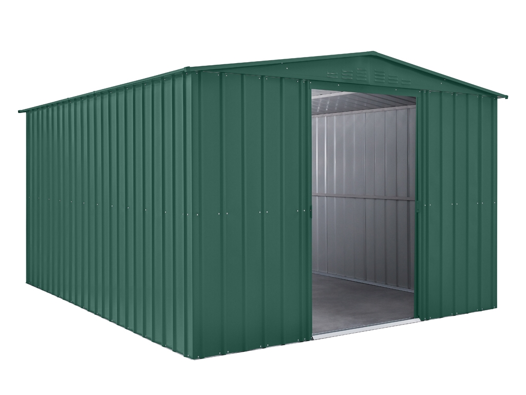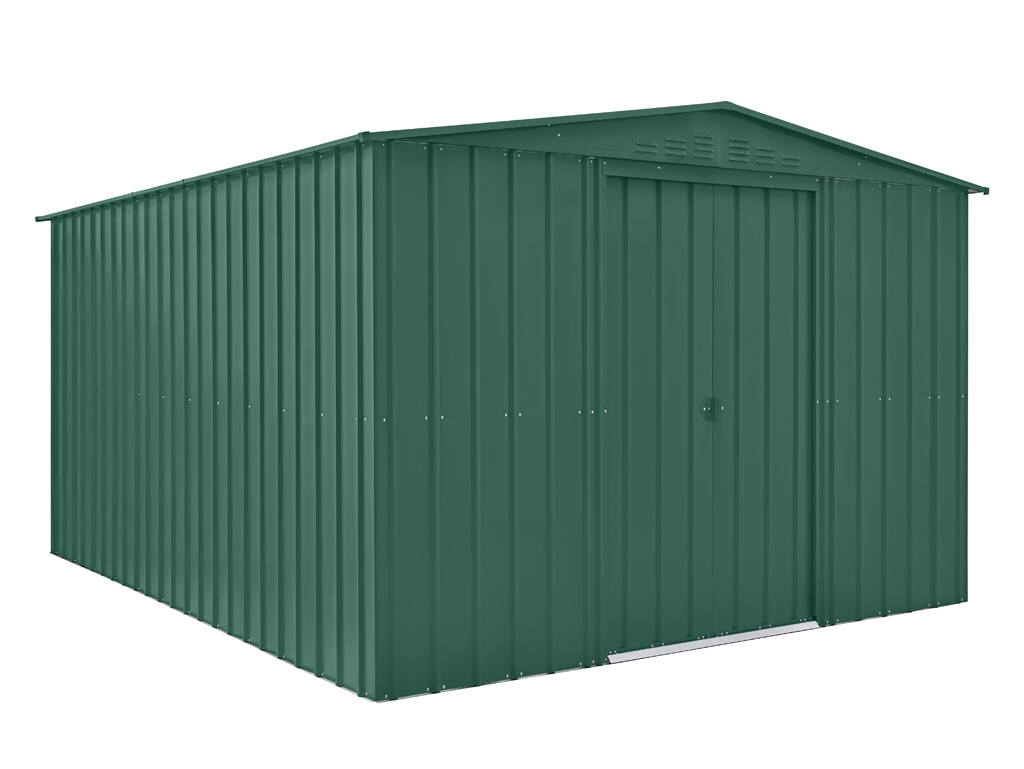 Metalowy domek ogrodowy premium, wzmocniona blacha, rurowa konstrukcja nośna, 1x świetlik, sz 295 x gł 361 x w 203 cm, kolor zielony.
