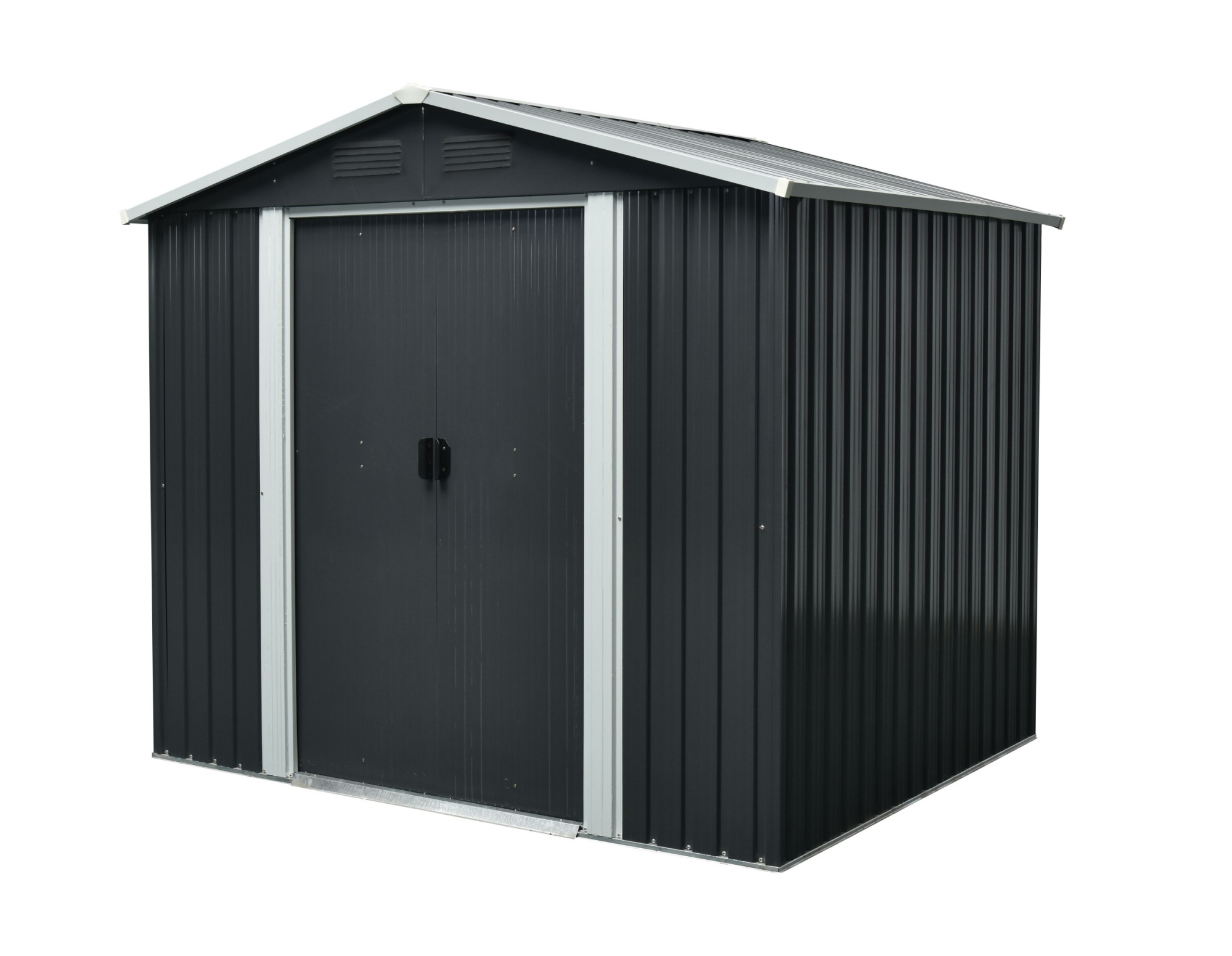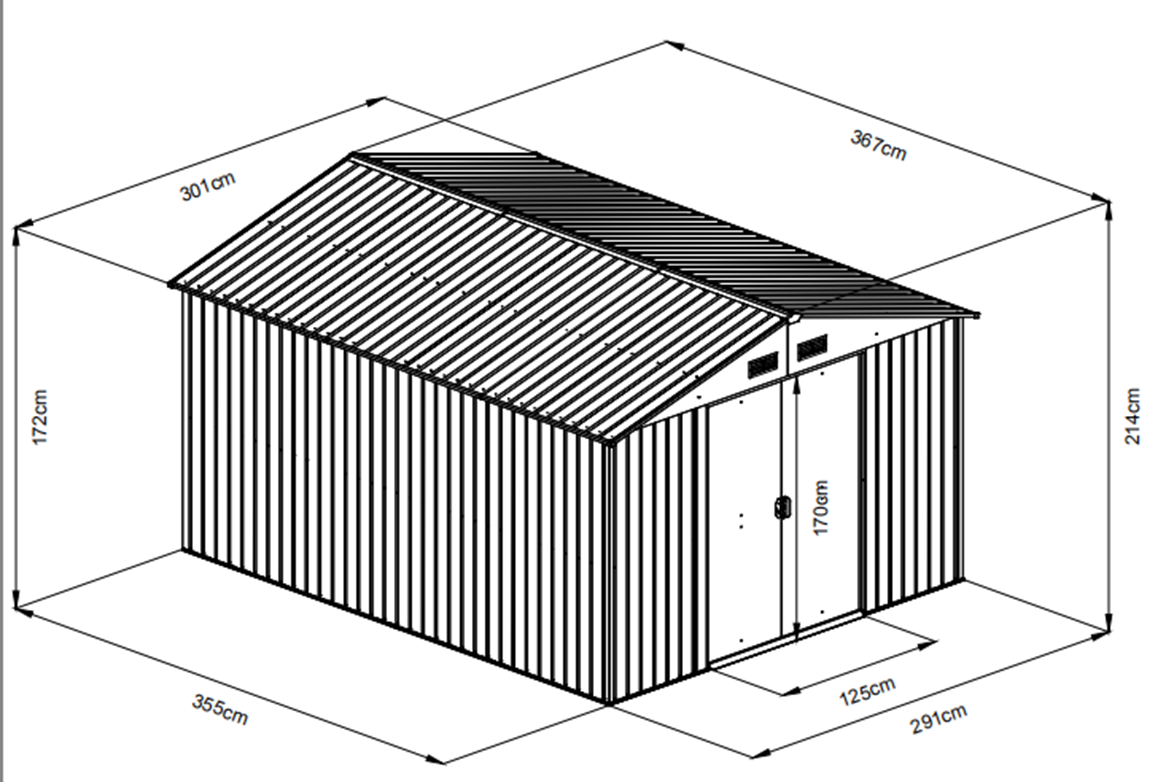 Metalowy domek ogrodowy, sz 291 x gł 355 x w 214 cm, powierzchnia zabudowana 10,33 m2, kolor antracyt.