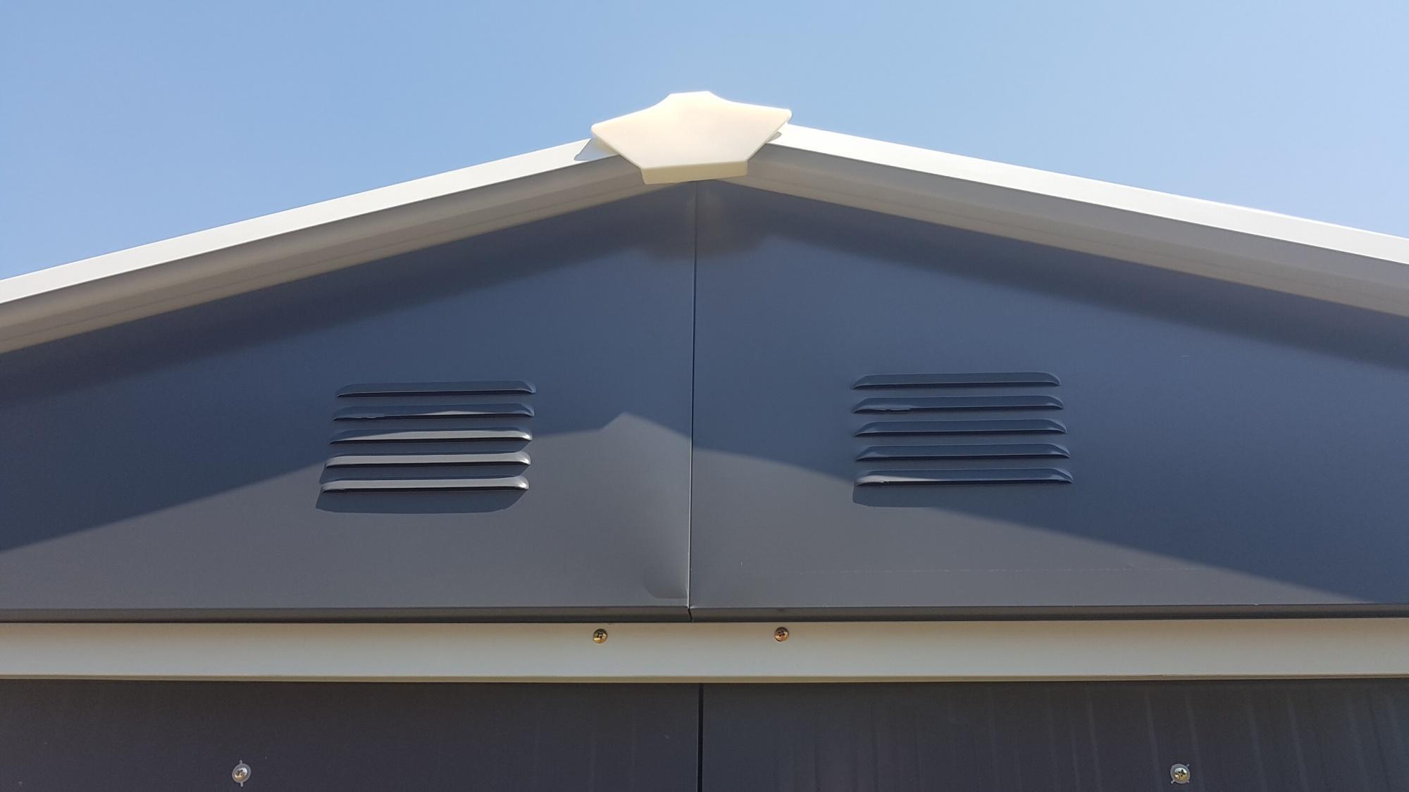 Wysokiej jakości blaszany domek ogrodowy, który przekonuje Klienta przede wszystkim bardzo korzystnym stosunkiem ceny do jakości. Wszystkie panele ścienne pokryte są folią zabezpieczającą przed zarysowaniami (należy ją zerwać po montażu).
