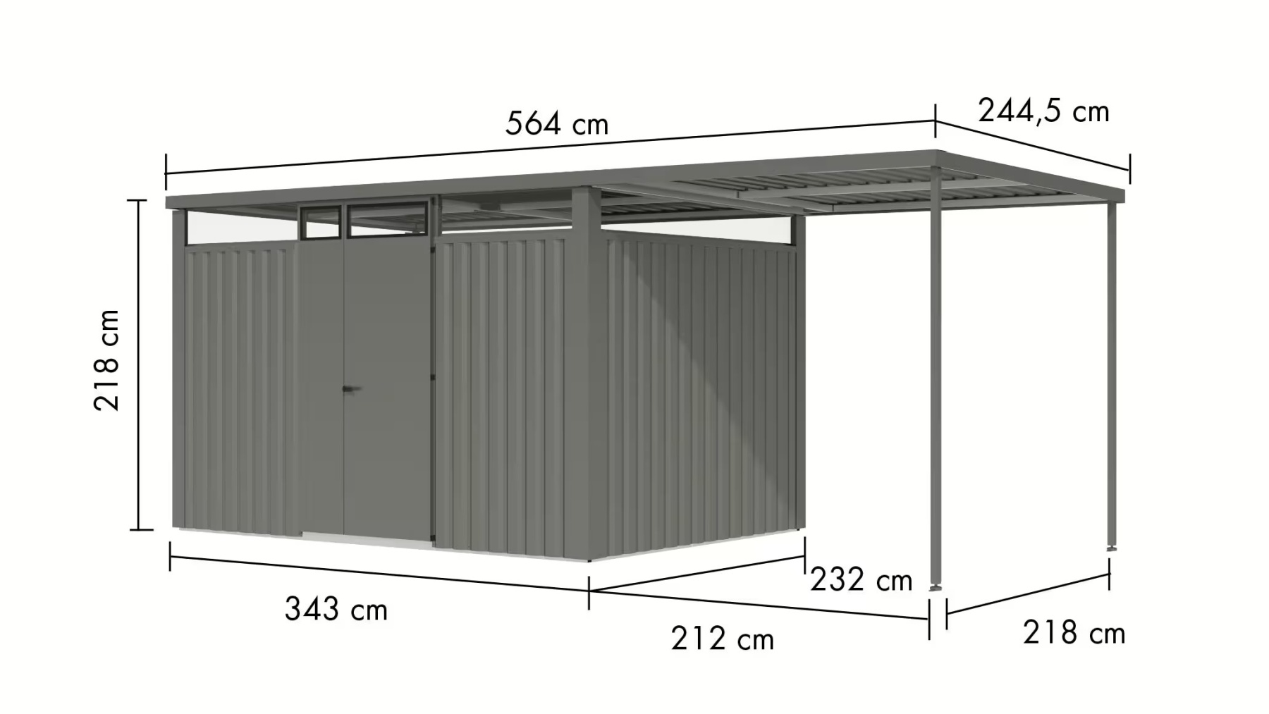 Ta wersja domu posiada otwartą dobudówkę o długości 225 cm, którą można zmontować z prawej lub lewej strony.