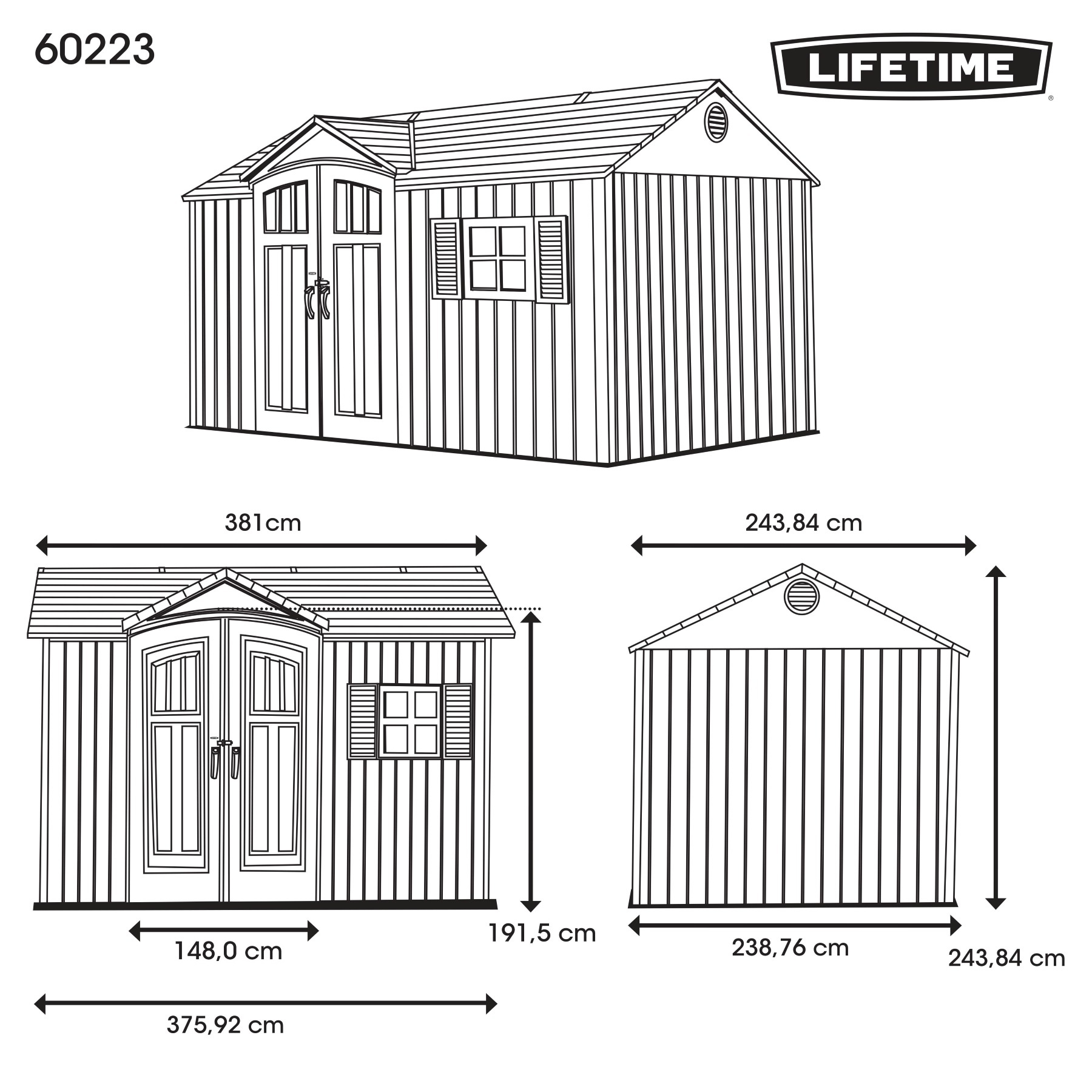 - wymiary zewnętrzne: szer 376 x gł 239 x wys 244 cm