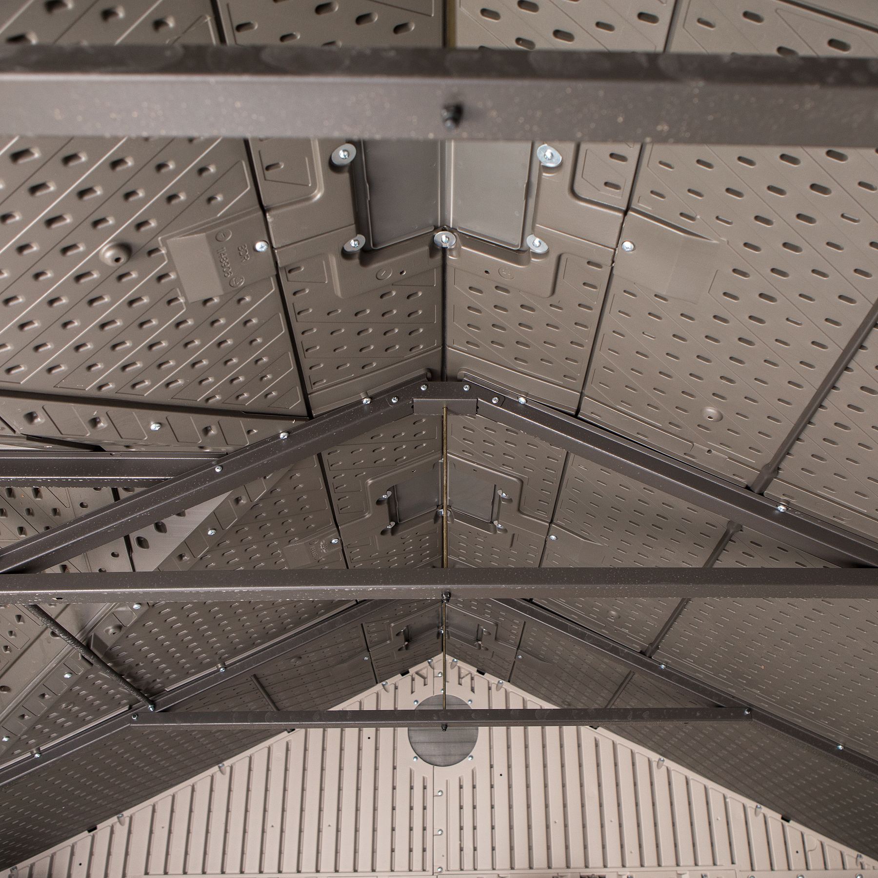 Solidny domek z tworzywa sztucznego „nowej generacji” do przechowywania artykułów ogrodniczych, sportowych, basenowych, grillowych, kempingowych, motoryzacyjnych i innych artykułów ogrodniczych. Nowoczesny design, łatwy montaż, zastosowanie całoroczne. Domek ogrodowy ma metalową konstrukcję nośną, a podwójne ściany, dach, podwójne drzwi i podłoga wykonane są z masywnego, bardzo wytrzymałego i praktycznie nietłukącego się tworzywa sztucznego. Plastikowa podłoga antypoślizgowa jest częścią domu (wliczona w cenę). Dom wyposażony jest w podwójne drzwi na zawiasach. Grubość podwójnej ścianki z tworzywa sztucznego wynosi 25 mm. Nachylenie dachu wynosi 30o, co znacznie zmniejsza ilość i nacisk śniegu na dach. Materiał, z którego wykonany jest dom (wyjątkowo wytrzymały polietylen z filtrem UV) nie żółknie i nie kruszy się, dzięki czemu nie ma konieczności częstego malowania domu, jak to jest konieczne w przypadku np. domów drewnianych – w praktyce sprawdza się domek ogrodowy z tworzywa sztucznego bezobsługowy. Dom został zaprojektowany i wykonany w taki sposób, aby montaż był możliwie prosty i krótki. Po prostu zatrzaskujesz poszczególne części w sąsiednich częściach i zabezpieczasz połączenie śrubą.