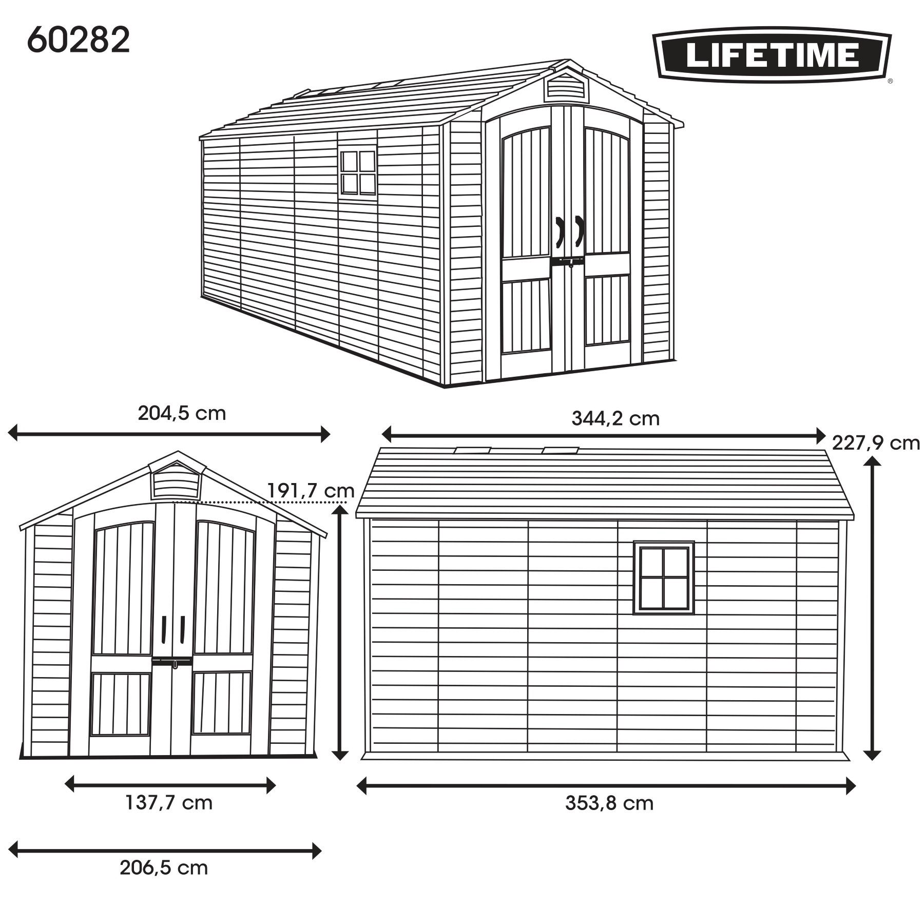 Solidny domek z tworzywa sztucznego „nowej generacji” do przechowywania artykułów ogrodniczych, sportowych, basenowych, grillowych, kempingowych, motoryzacyjnych i innych artykułów ogrodniczych. Nowoczesny design, łatwy montaż, zastosowanie całoroczne. Domek ogrodowy ma metalową konstrukcję nośną, a podwójne ściany, dach, podwójne drzwi i podłoga wykonane są z masywnego, bardzo wytrzymałego i praktycznie nietłukącego się tworzywa sztucznego. Plastikowa podłoga antypoślizgowa jest częścią domu (wliczona w cenę). Dom wyposażony jest w podwójne drzwi na zawiasach. Grubość podwójnej ścianki z tworzywa sztucznego wynosi 26 mm. Nachylenie dachu wynosi 30o, co znacznie zmniejsza ilość i nacisk śniegu na dach. Materiał, z którego wykonany jest dom (wyjątkowo wytrzymały polietylen z filtrem UV) nie żółknie i nie kruszy się, dzięki czemu nie ma konieczności częstego malowania domu, jak to jest konieczne w przypadku np. domów drewnianych – w praktyce sprawdza się domek ogrodowy z tworzywa sztucznego bezobsługowy. Dom został zaprojektowany i wykonany w taki sposób, aby montaż był możliwie prosty i krótki. Po prostu zatrzaskujesz poszczególne części w sąsiednich częściach i zabezpieczasz połączenie śrubą.