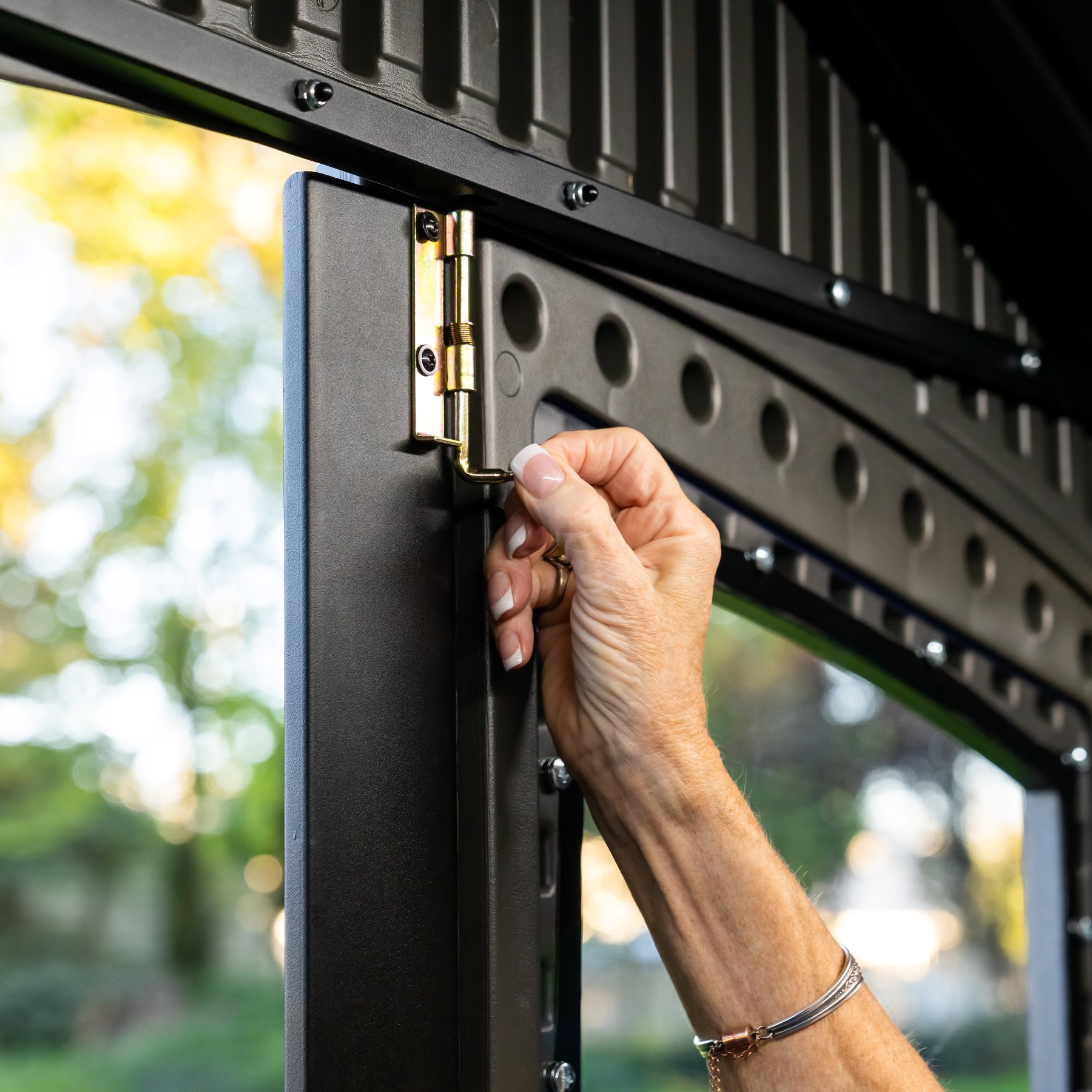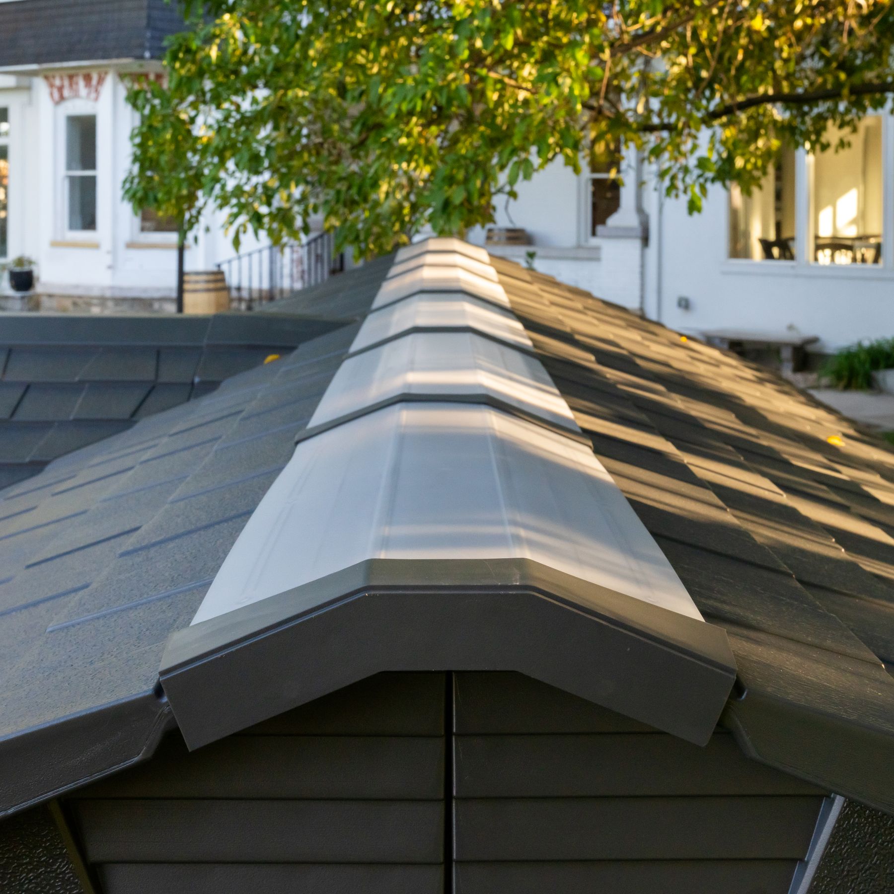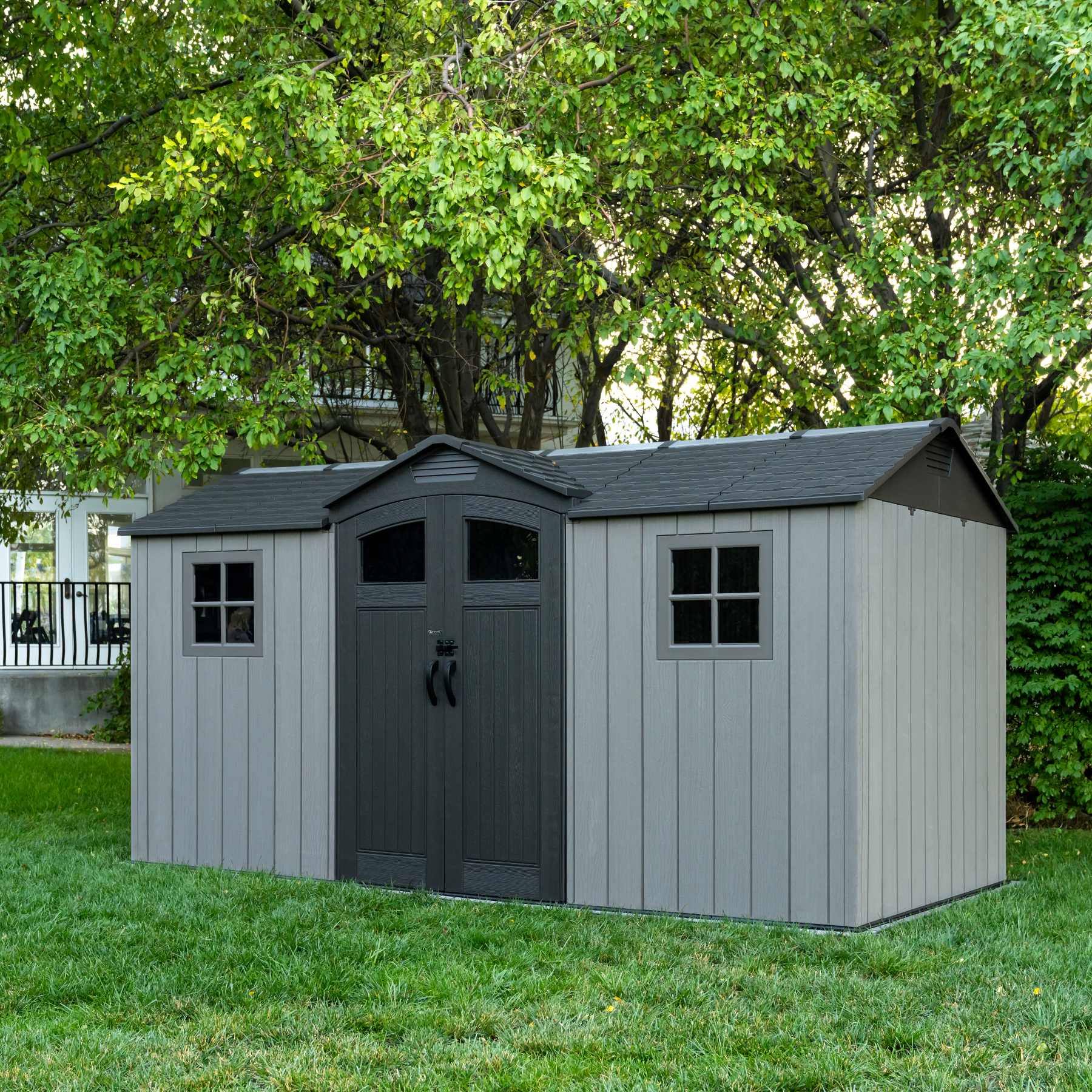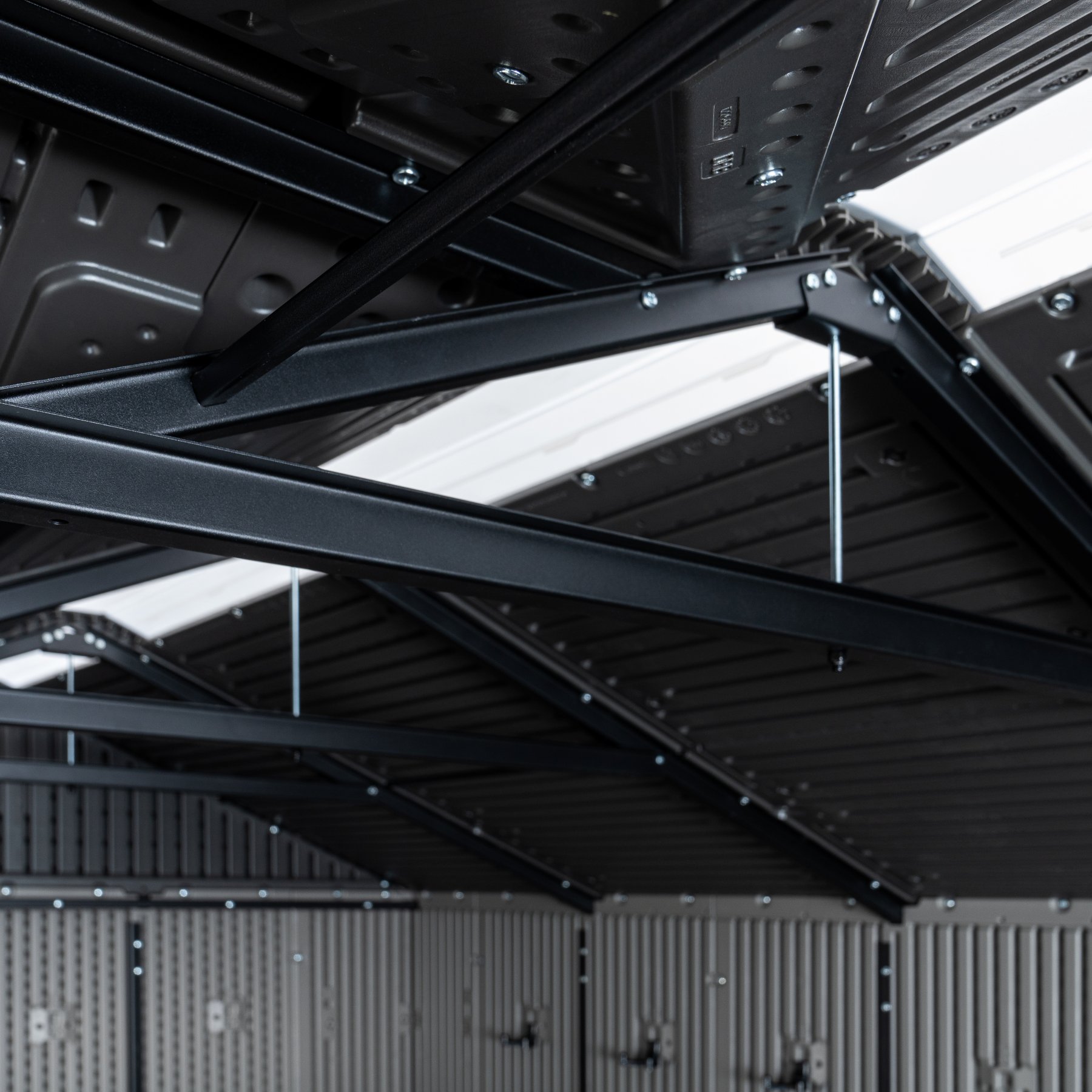 Solidny domek z tworzywa sztucznego „nowej generacji” do przechowywania artykułów ogrodniczych, sportowych, basenowych, grillowych, kempingowych, motoryzacyjnych i innych artykułów ogrodniczych. Nowoczesny design, łatwy montaż, zastosowanie całoroczne. Domek ogrodowy ma metalową konstrukcję nośną, a podwójne ściany, dach, podwójne drzwi i podłoga wykonane są z masywnego, bardzo wytrzymałego i praktycznie nietłukącego się tworzywa sztucznego. Plastikowa podłoga antypoślizgowa jest częścią domu (wliczona w cenę). Dom wyposażony jest w podwójne drzwi na zawiasach. Grubość podwójnej ścianki z tworzywa sztucznego wynosi 26 mm. Nachylenie dachu wynosi 30o, co znacznie zmniejsza ilość i nacisk śniegu na dach. Materiał, z którego wykonany jest dom (wyjątkowo wytrzymały polietylen z filtrem UV) nie żółknie i nie kruszy się, dzięki czemu nie ma konieczności częstego malowania domu, jak to jest konieczne w przypadku np. domów drewnianych – w praktyce sprawdza się domek ogrodowy z tworzywa sztucznego bezobsługowy. Dom został zaprojektowany i wykonany w taki sposób, aby montaż był możliwie prosty i krótki. Po prostu zatrzaskujesz poszczególne części w sąsiednich częściach i zabezpieczasz połączenie śrubą.