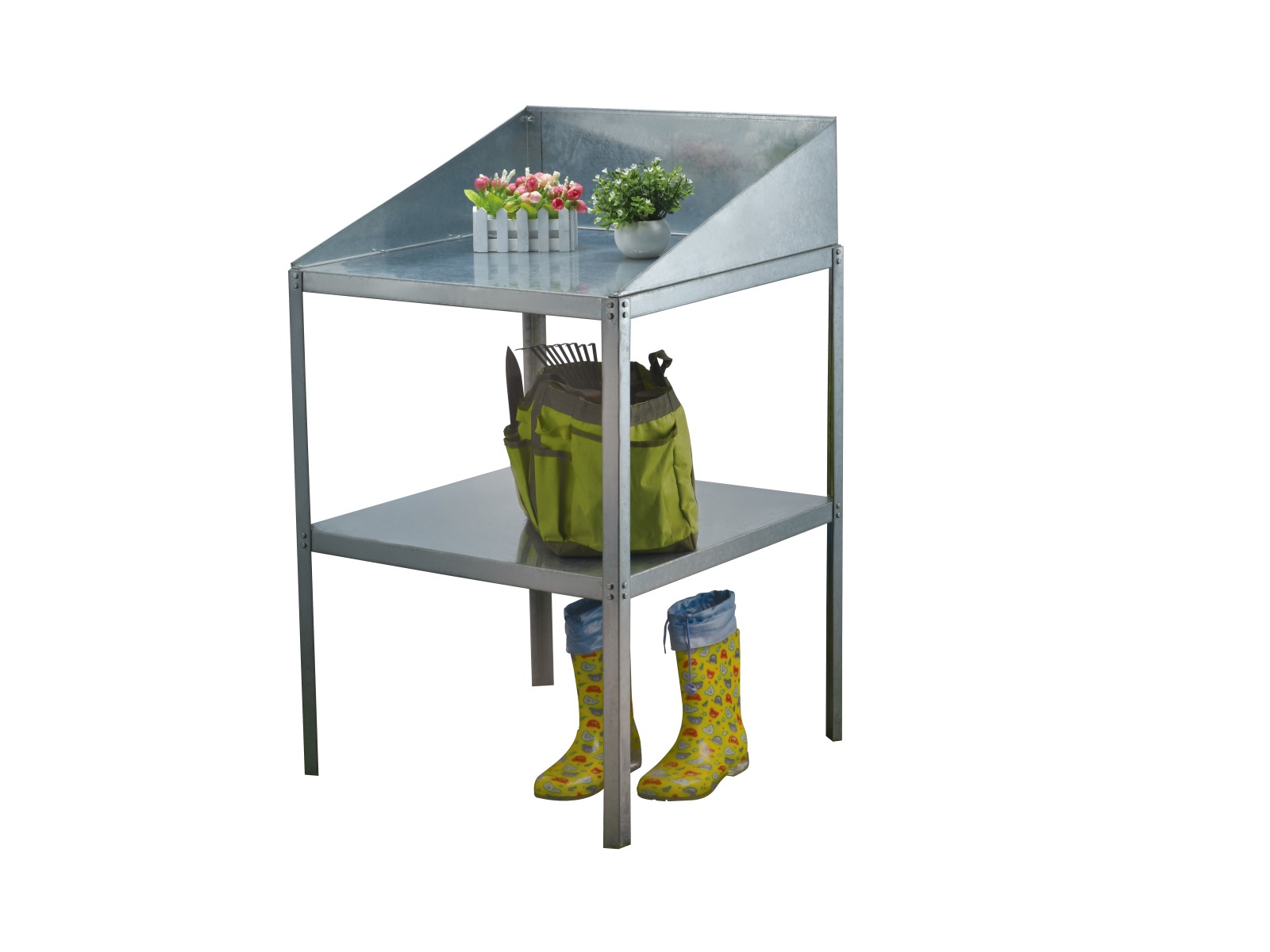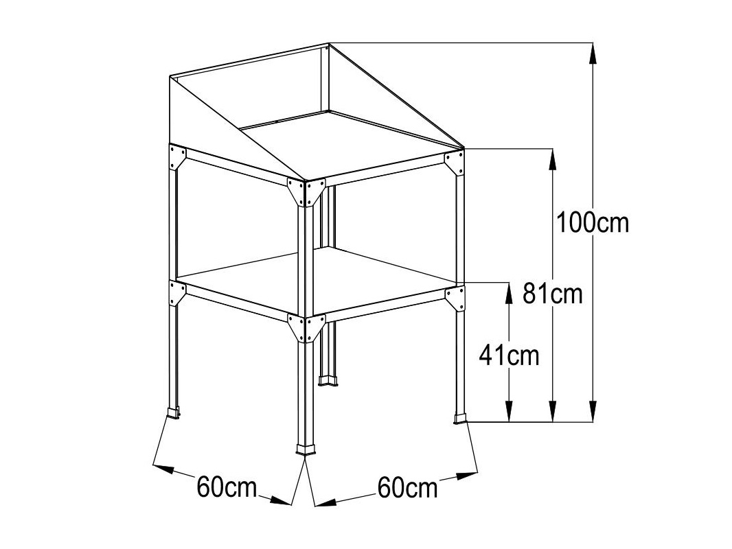 Stół stalowy dwupółkowy z blachy ocynkowanej stojący na podłożu. Wymiary stołu to dł 60 x szer 60 x wys 41/81 cm. Stół nadaje się do wszystkich typów szklarni. Produkt uniwersalny. Dostarczamy w stanie rozłożonym jako zestaw.