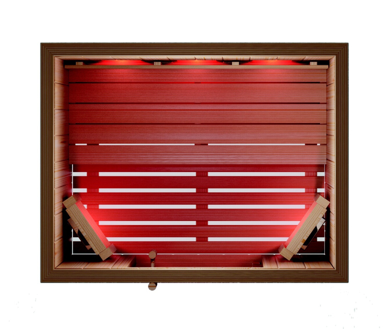 - 6x redlight grzejnik (3x tył, 1x przód lewy, 1x przód prawy, 1x pod ławką) z ekstra dużymi parabolicznymi lustrami w celu maksymalizacji wydajności i idealnego ukierunkowania szerokospektralnego promieniowania podczerwonego typu IR-A, IR-B i IR-C