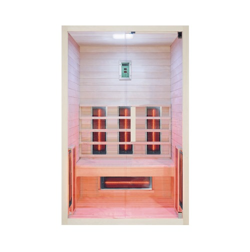 - 6x redlight grzejnik (3x tył, 1x przód lewy, 1x przód prawy, 1x pod ławką) z ekstra dużymi parabolicznymi lustrami w celu maksymalizacji wydajności i idealnego ukierunkowania szerokospektralnego promieniowania podczerwonego typu IR-A, IR-B i IR-C