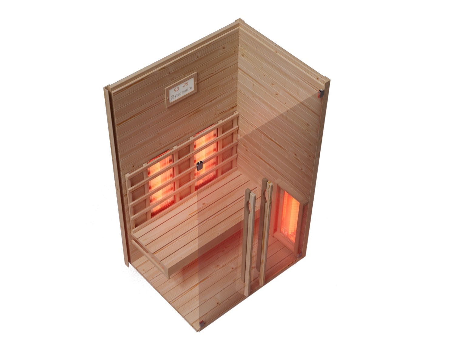Aby uzyskać maksymalny efekt sauny na podczerwień, zalecamy ustawienie najwyższej możliwej temperatury na panelu sterowania. Dzięki temu promienniki podczerwieni będą aktywne przez cały czas korzystania z sauny. Ważniejsza od samej temperatury powietrza jest siła promieniowania podczerwonego, które przenika do organizmu i przynosi pożądane efekty. Przy maksymalnym ustawieniu temperatura wewnątrz sauny na podczerwień wynosi około 45–60 °C.