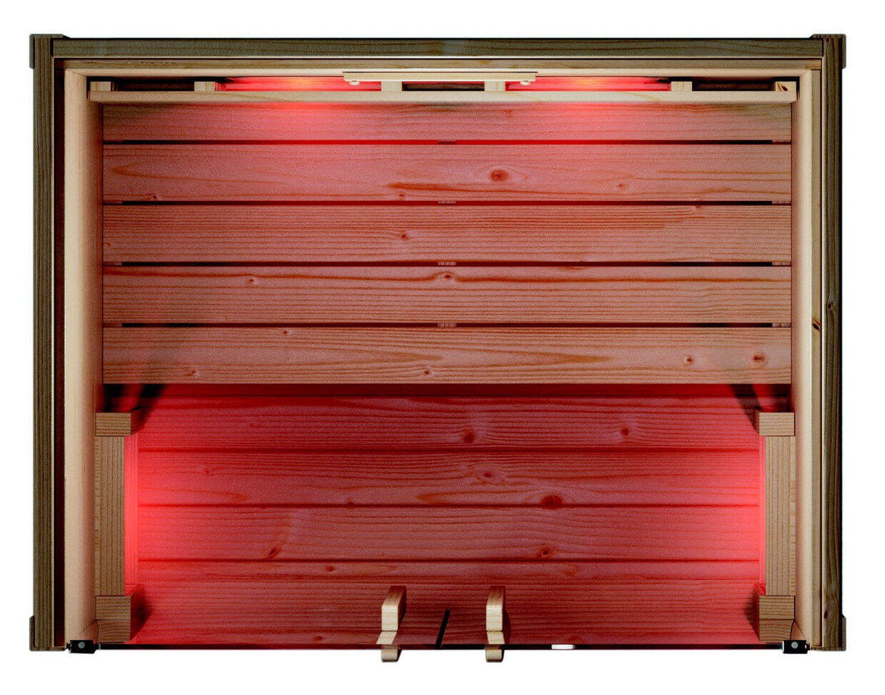 - 5x grzejnik magnezowy (2x z tyłu, 1x z przodu po lewej, 1x z przodu po prawej, 1x pod ławką) z bardzo dużymi lustrami parabolicznymi w celu maksymalizacji wydajności i idealnego ukierunkowania promieniowania podczerwonego typu IR-C