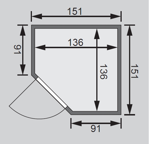 Mała sauna fińska przeznaczona dla maksymalnie dwóch osób. Ma wymiary sz 151 x gł 151 x w 198 cm z drzwiami narożnymi. Ten model sauny fińskiej przeznaczony jest do wnętrz o umiarkowanej temperaturze w domu lub mieszkaniu. Jej producent, firma KARIBU HOLZTECHNIK z Bremy w Niemczech, potrafiła swoimi produktami z sukcesem nawiązać do stuletniej tradycji saun skandynawskich, a jednocześnie włączyć do niej współczesne, nowoczesne technologie. Sauna w całości wykonana jest z drewna świerkowego nordyckiego o naturalnym wyglądzie. Drewno pochodzi z dalekiej północy Europy i jest całkowicie nieobrobione chemicznie (nie bejcowane ani lakierowane). Dzięki temu pozbawione jest wszelkich znanych, problematycznych substancji, które mogłyby wydzielać się z drewna podczas korzystania z sauny. Ta sauna wewnętrzna ma wyjątkowe właściwości termoizolacyjne. Ściany sauny składają się z wewnętrznej i zewnętrznej warstwy specjalnie wygładzonych desek na pióro i wpust, pomiędzy którymi znajduje się izolacja termiczna w postaci wełny mineralnej o grubości 42 mm całkowita grubość ściany wynosi zatem 68 mm. Tylna lub boczna strona niewidoczna, zwrócona w stronę ściany pokoju, jest pokryta płytą pilśniową. Dlatego przy tej samej izolacji termicznej są one o około 10 mm cieńsze od widocznych boków obłożonych deskami.