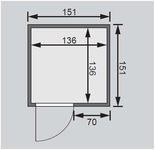 Sauna fińska przeznaczona dla dwóch osób w pozycji leżącej. Jej niewielkie wymiary kwadratowe sz 151 x gł 151 x w 198 cm predestynowały ją do mniejszych mieszkań. Ten model sauny fińskiej przeznaczony jest do wnętrz o umiarkowanej temperaturze w domu lub mieszkaniu. Jej producent, firma KARIBU HOLZTECHNIK z Bremy w Niemczech, potrafiła swoimi produktami z sukcesem nawiązać do wielowiekowej tradycji saun skandynawskich, a jednocześnie włączyć do niej współczesne, nowoczesne technologie. Sauna w całości wykonana jest z drewna świerkowego nordyckiego o naturalnym wyglądzie. Drewno pochodzi z dalekiej północy Europy i jest całkowicie nieobrobione chemicznie (nie bejcowane ani lakierowane). Dzięki temu pozbawione jest wszelkich znanych, problematycznych substancji, które mogłyby wydzielać się z drewna podczas korzystania z sauny. Ta sauna wewnętrzna ma wyjątkowe właściwości termoizolacyjne. Ściany sauny składają się z wewnętrznej i zewnętrznej warstwy specjalnie wygładzonych desek na pióro i wpust, pomiędzy którymi znajduje się izolacja termiczna w postaci wełny mineralnej o grubości 42 mm. Całkowita grubość ściany wynosi zatem 68 mm. Tylne lub boczne niewidoczne strony zwrócone w stronę ściany pomieszczenia mają zewnętrzną część wykonaną z płyty pilśniowej. Dlatego przy tej samej izolacji termicznej są one o około 10 mm cieńsze od widocznych boków obłożonych deskami.