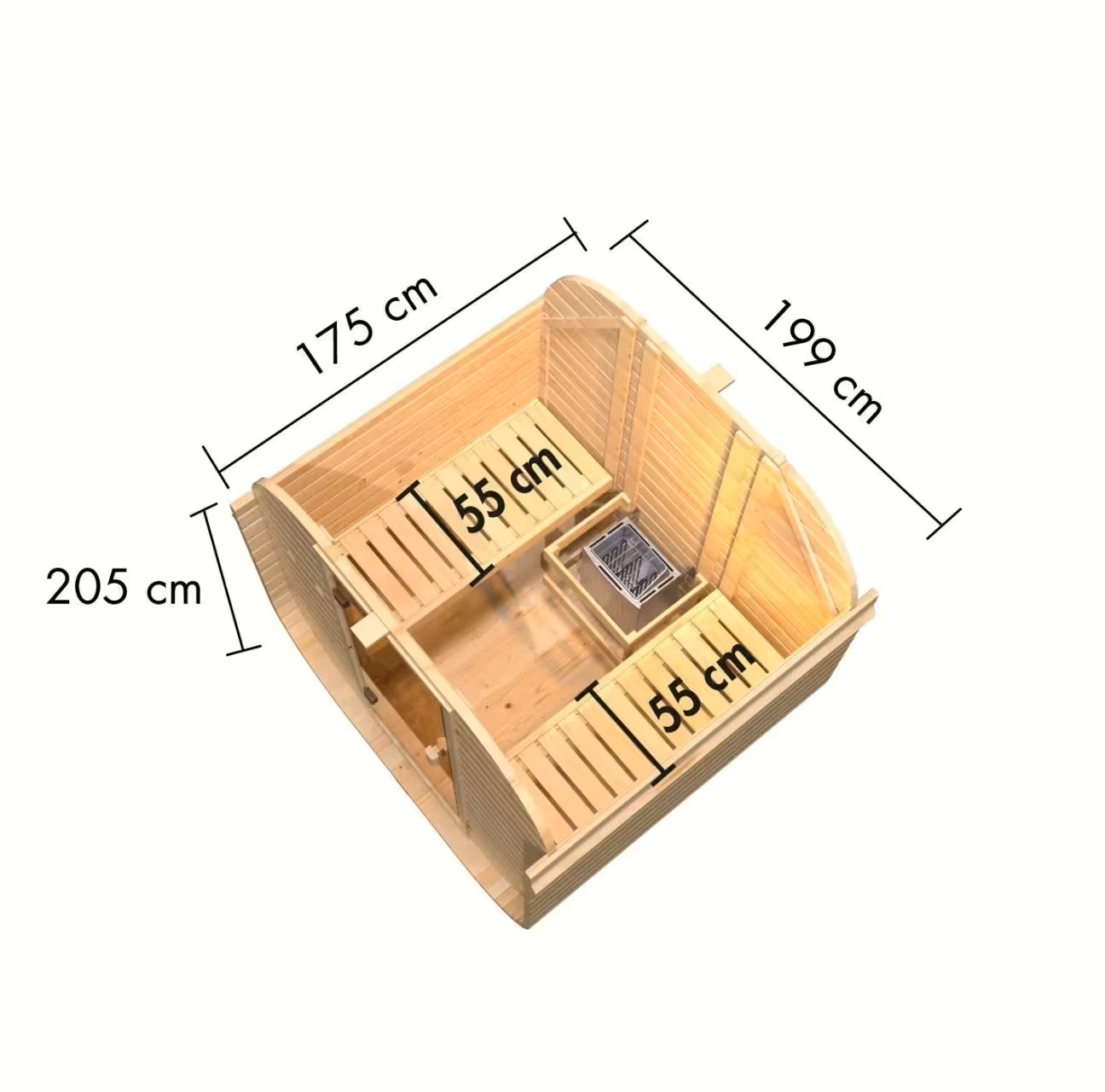 - wymiary zewnętrzne: sz 199 x gł 175 x w 205 cm