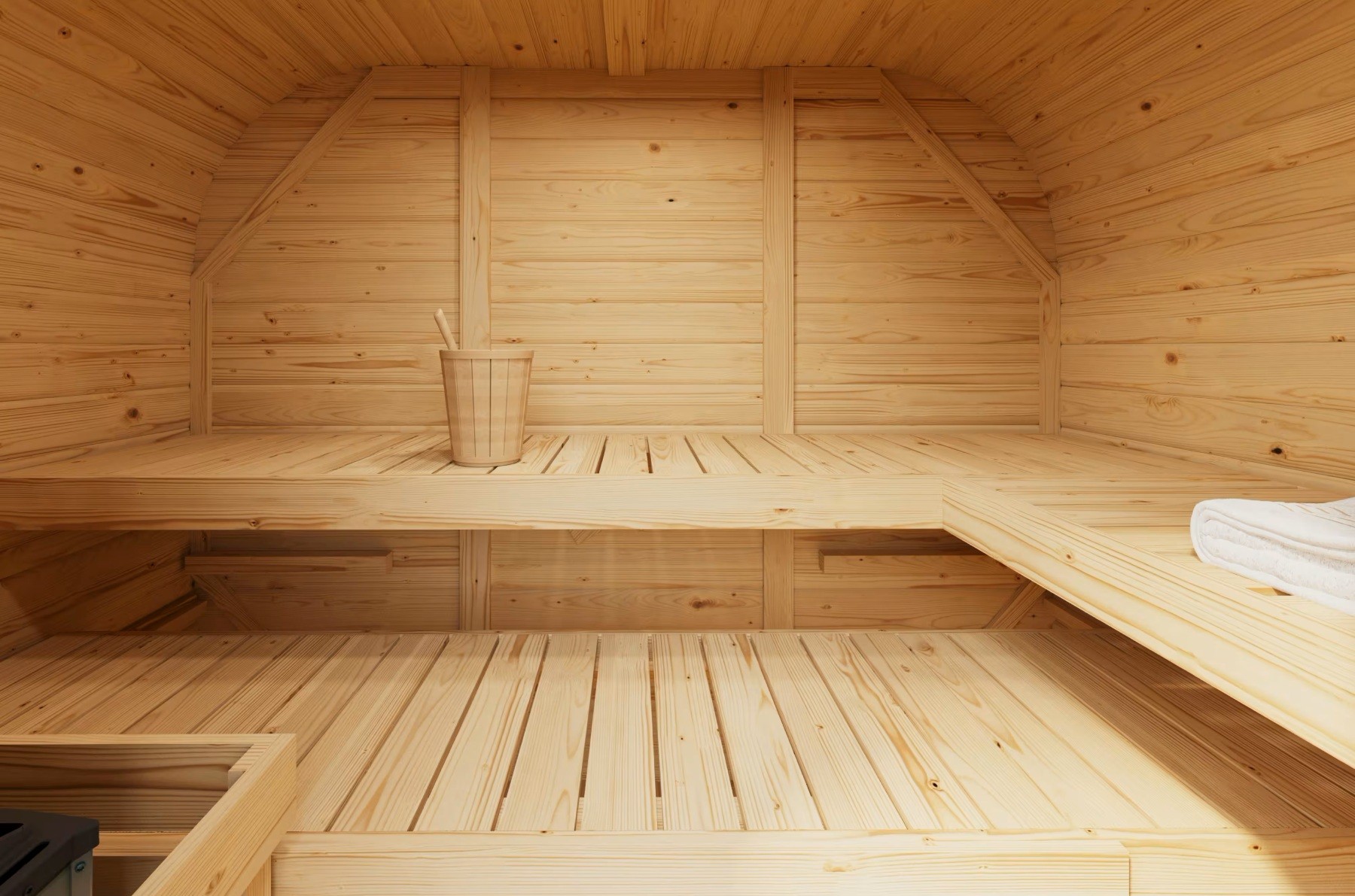 Wiadro do sauny wykonane z drewna świerkowego z dwoma uchwytami, klasyczny design bez plastikowej wkładki, pojemność 10 L.