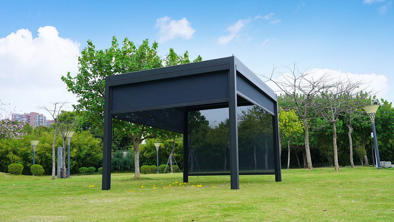 - przy silnym wietrze i innych niesprzyjających warunkach należy ją wciągnąć w ościeżnicę, aby uniknąć uszkodzenia rolety lub całej pergoli