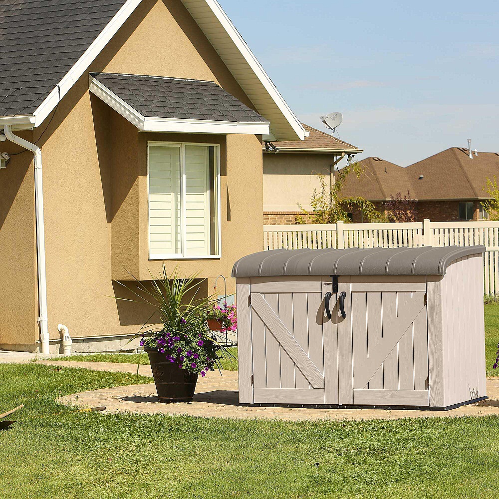 - skrzynka ogrodowa wykonana jest z bardzo wytrzymałego tworzywa sztucznego z filtrem UV, dzięki czemu nie żółknie i nie łamie się na słońcu