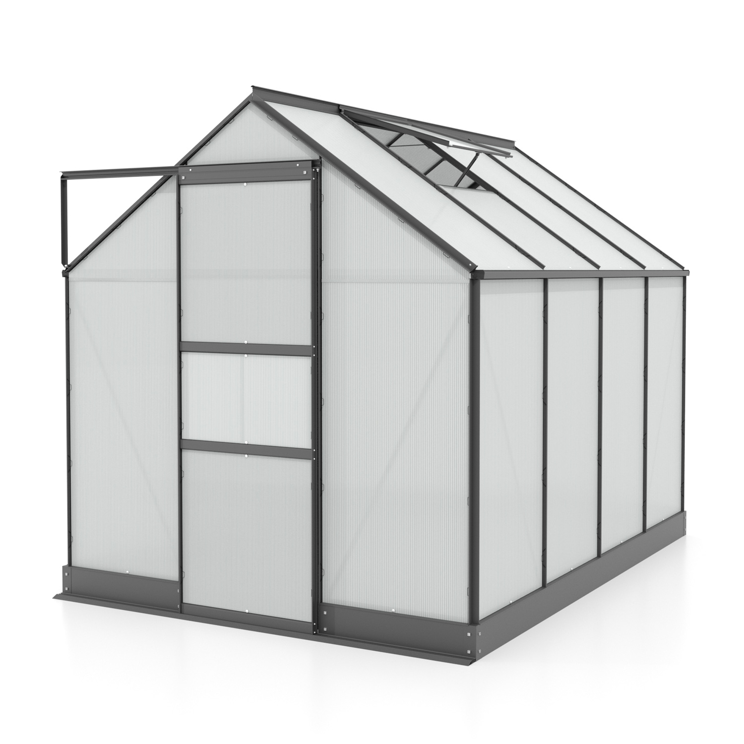 Szklarnia aluminiowa, sz 1,95 x gł 2,61 m, kolor czarny, 1x okno dachowe, poliwęglan 4 mm, podstawa w cenie, pow. 5,09 m2.