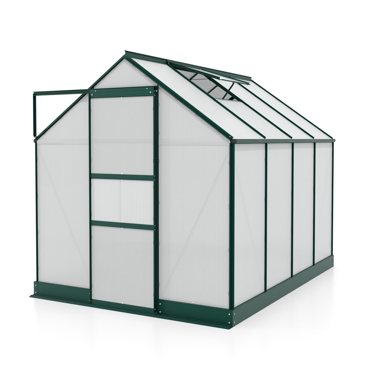 Szklarnia aluminiowa, sz 1,95 x gł 2,61 m, kolor zielony, 1x okno dachowe, poliwęglan 6 mm, podstawa w cenie, pow. 5,09 m2.