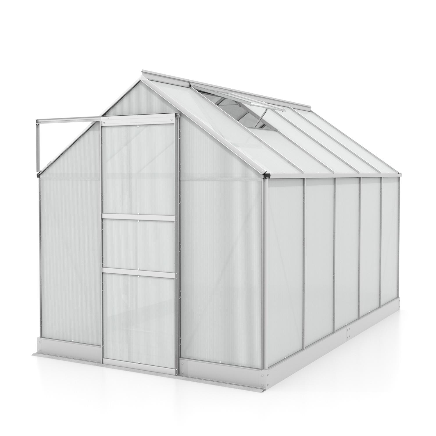 Szklarnia aluminiowa, sz 1,95 x gł 3,23 m, kolor srebrny, 2x okno dachowe, poliwęglan 6 mm, podstawa w cenie, pow. 6,30 m2.