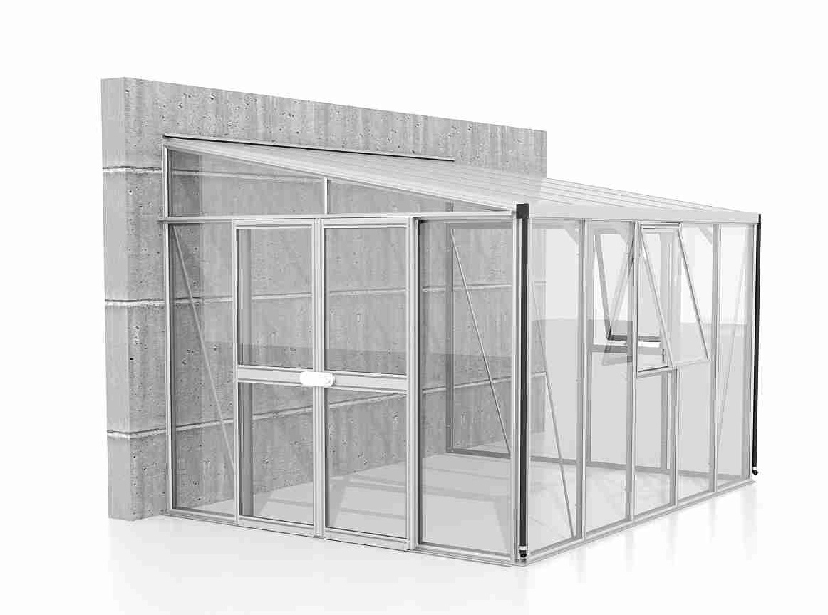 Szklarnie do ściany z serii ATHENA są zaliczane do kategorii PREMIUM - szklarnia jest produkowana przez renomowanego producenta z Wielkiej Brytanii. Szklarnia wykonana jest z anodowanych profili aluminiowych, a przeszklenie wykonane jest ze szkła hartowanego o grubości 3 mm. Szkło znacznie zmniejsza nagrzewanie się wnętrza w okresie letnim, jednocześnie zapewniając wystarczającą przepuszczalność światła. Przeszklenie dachu wykonane jest z termoizolacyjnych płyt komorowych z poliwęglanu o grubości 10 mm. Przeszklenie jest wsunięte w aluminiowe profile H.