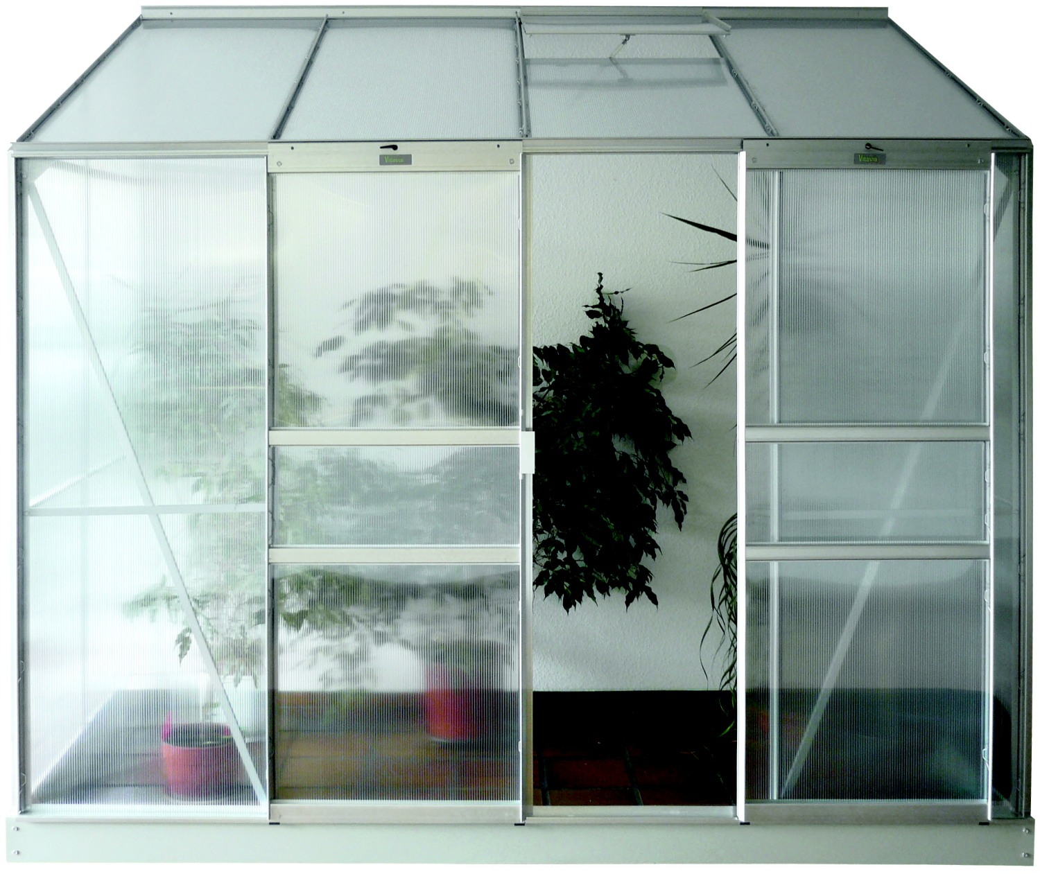 Szklarnia wyposażona jest w podwójne drzwi (sz 1,22 x w 1,63 m), profile AL, przeszklenia, 1x okno dachowe wentylacyjne otwierane ręcznie, wszystkie materiały łączące. Szklarnię ogrodową można zbudować albo na wymurówce z cegły (wtedy nie jest konieczny zakup podstawy z blachy ocynkowanej), albo na podstawie z blachy ocynkowanej (należy dokupić). Budując bez fundamentu ceglanego zdecydowanie zalecamy dokupienie podstawy. Istnieje możliwość zakupu szeregu dodatkowych standardowych akcesoriów do szklarni - półki, stojaki, termometry, higrometry.