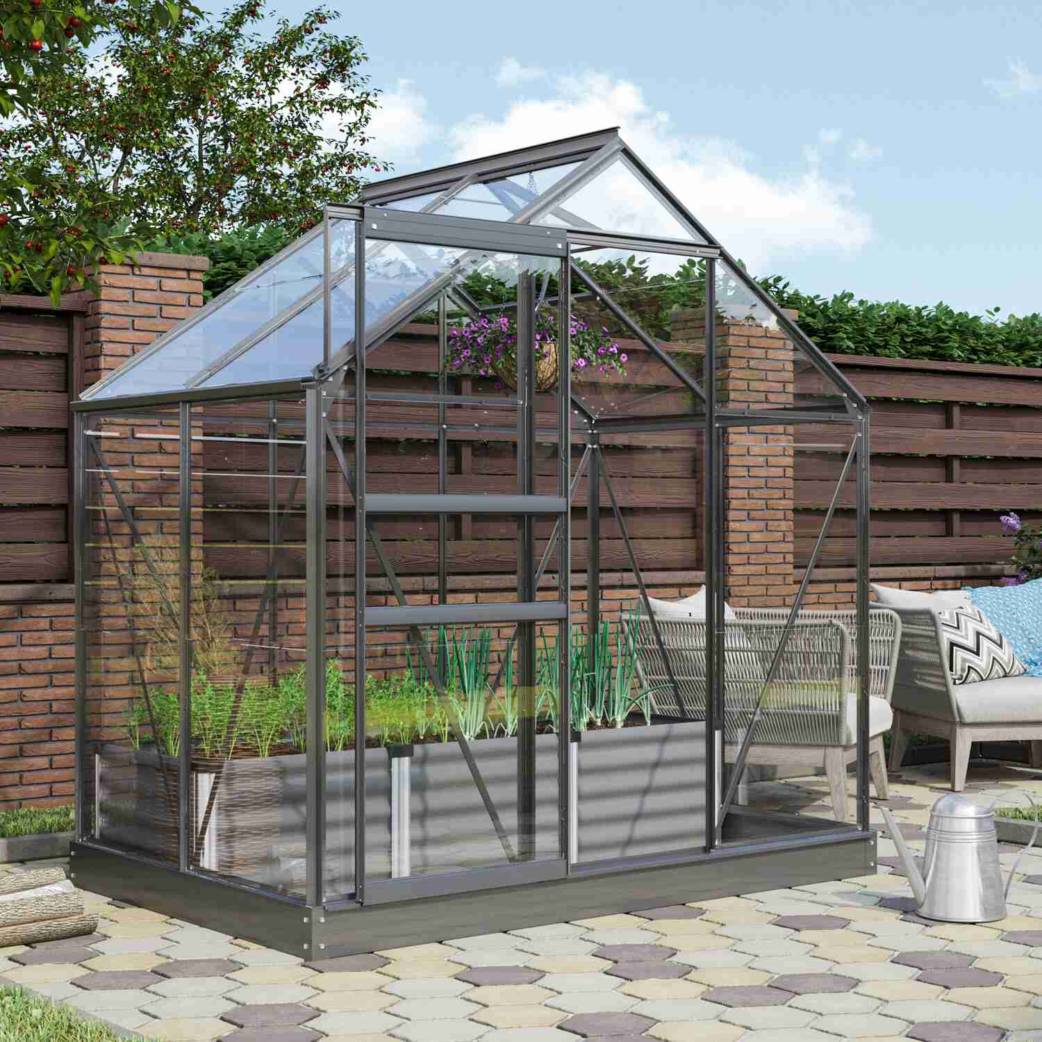 Szklarnia aluminiowa, sz 1,95 x gł 1,31 m, kolor czarny, 1x okno dachowe, szkło hartowane przezroczyste 3 mm, pow 2,55 m2.