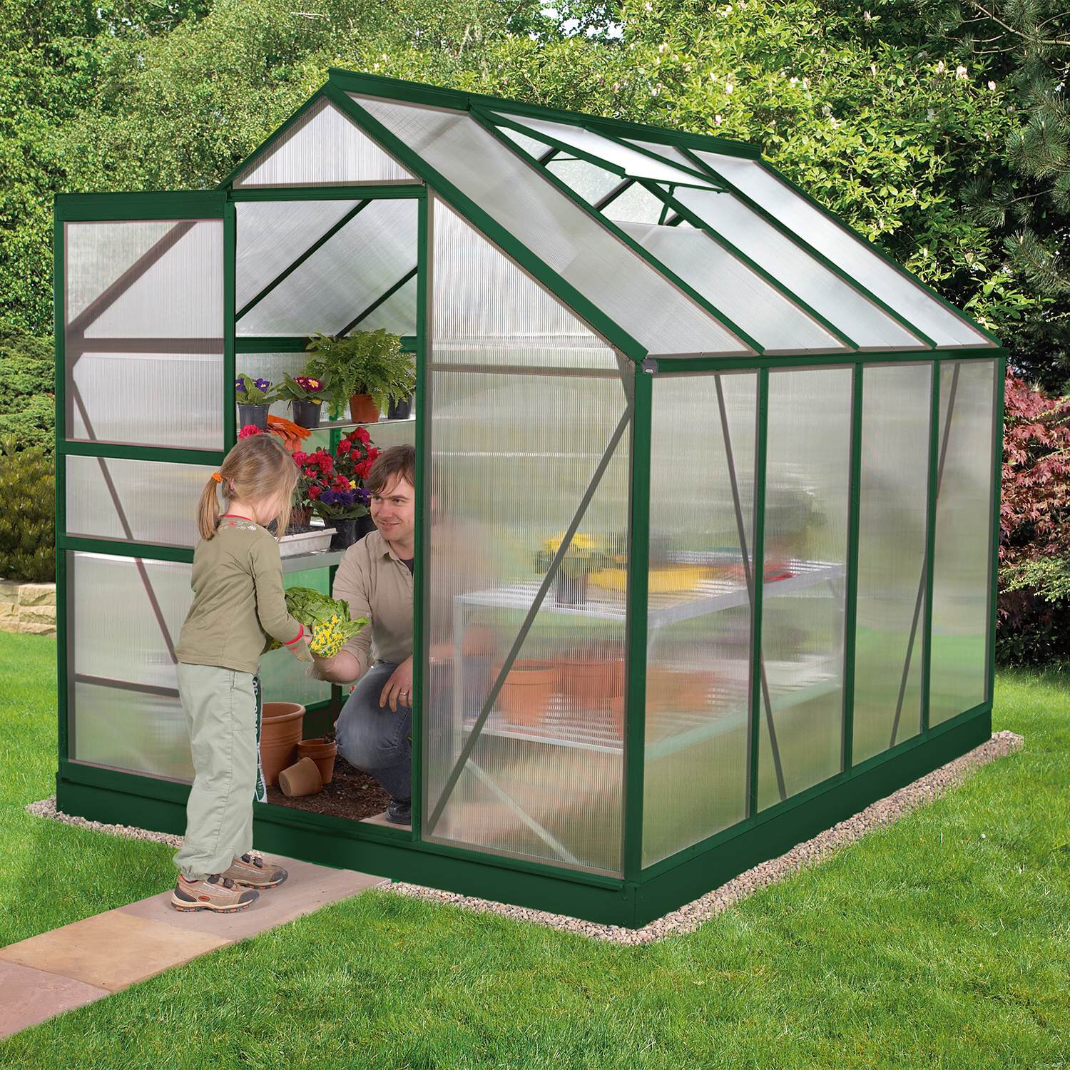 Szklarnia aluminiowa, sz 1,95 x gł 2,57 m, kolor zielony, 1x okno dachowe, poliwęglan o grubości 6 mm z Wielkiej Brytanii, pow 5,01 m2.