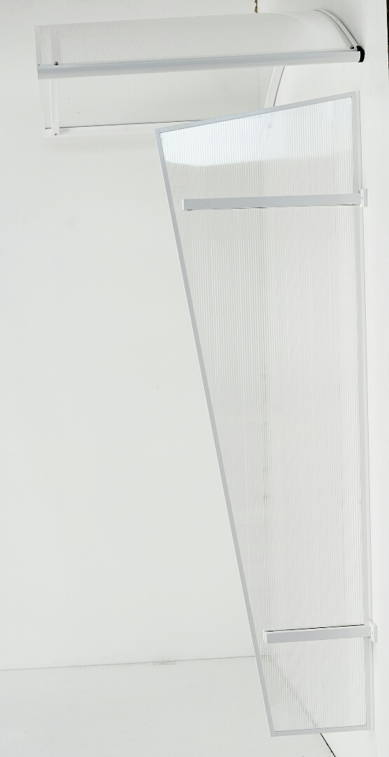 Uniwersalna biała ściana boczna aluminiowa do daszka drzwiowego, 310 x 600 x 1850 mm, przezroczysty poliwęglan komórkowy 4,5 mm.